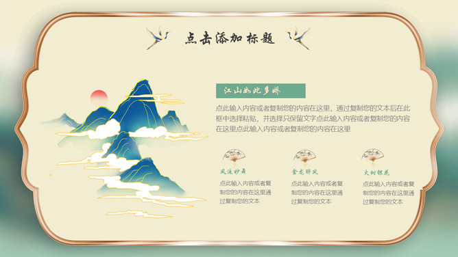 质感国潮方框中国风PPT模板。一套精美中国风幻灯片模板,很有质感,莫兰迪青黛配色,动态播放下过。